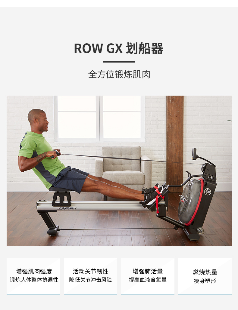 多功能 Life Fitness 力健 Row GX 训练器专为以下机构而设计:想要为锻炼者添加充满挑战的全身锻炼有氧器械选择、增强围绕 SYNRGY360 和 HD Elite 系统的小组训练或创建动态高强度间歇性训练 (HIIT) 空间。流体阻力技术提供了平滑和自然的感觉,并允许轻松调整阻力以满足大量用户的需求。方便移动意味着,可将 Row GX 训练器轻松移出和移入小组训练区域,或在不使用时将它直立存放。