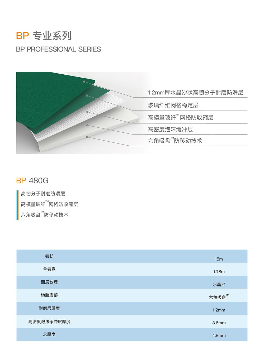 天速Tinsue羽毛球PVC运动地胶BP480G