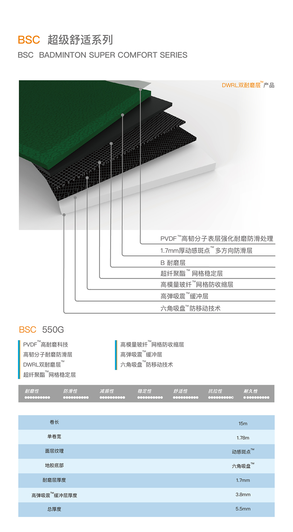 天速Tinsue羽毛球PVC运动地胶BSC550