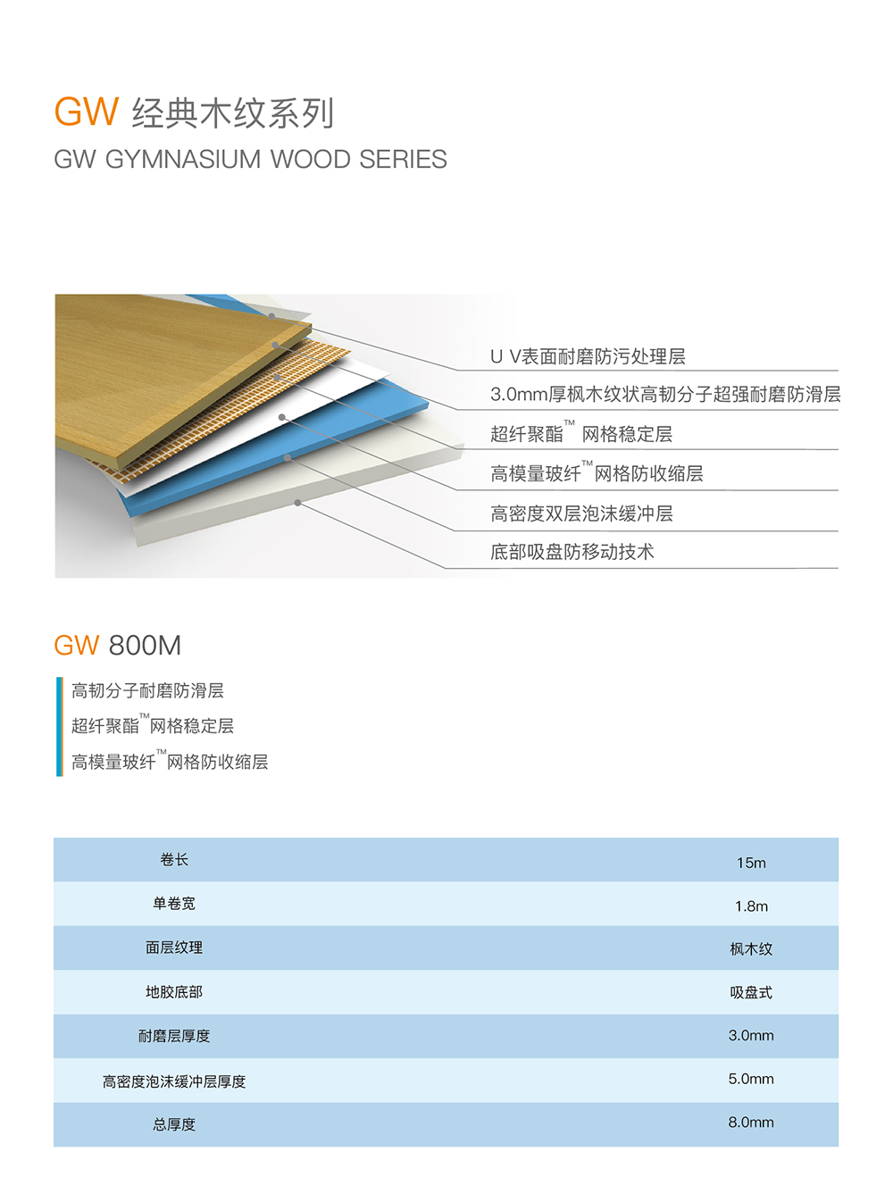 天速TinsuePVC综合运动地胶木纹系列GW800M