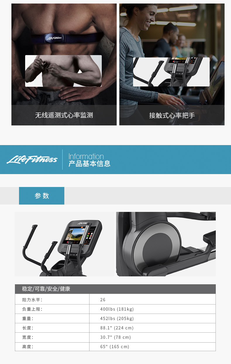 心率监测 - Polar 遥测技术(需要胸带选件)。具有 DSP(数字信号处理)功能的 Lifepulse 数字心率监测