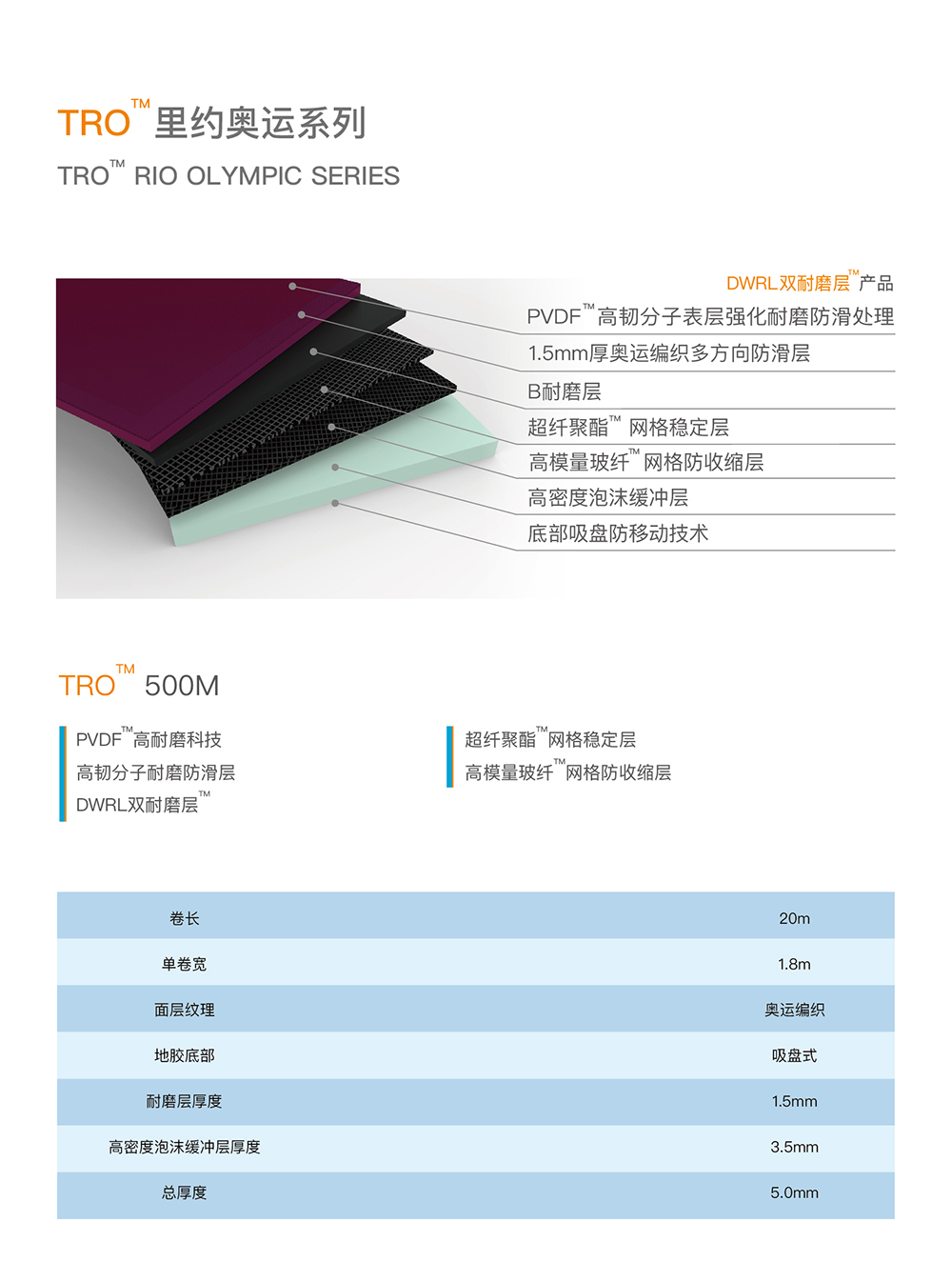 天速Tinsue乒乓球PVC运动地胶奥运系列TRO-500M